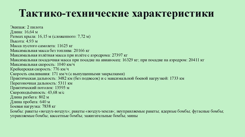 Тактико-технические характеристикиЭкипаж: 2 пилота