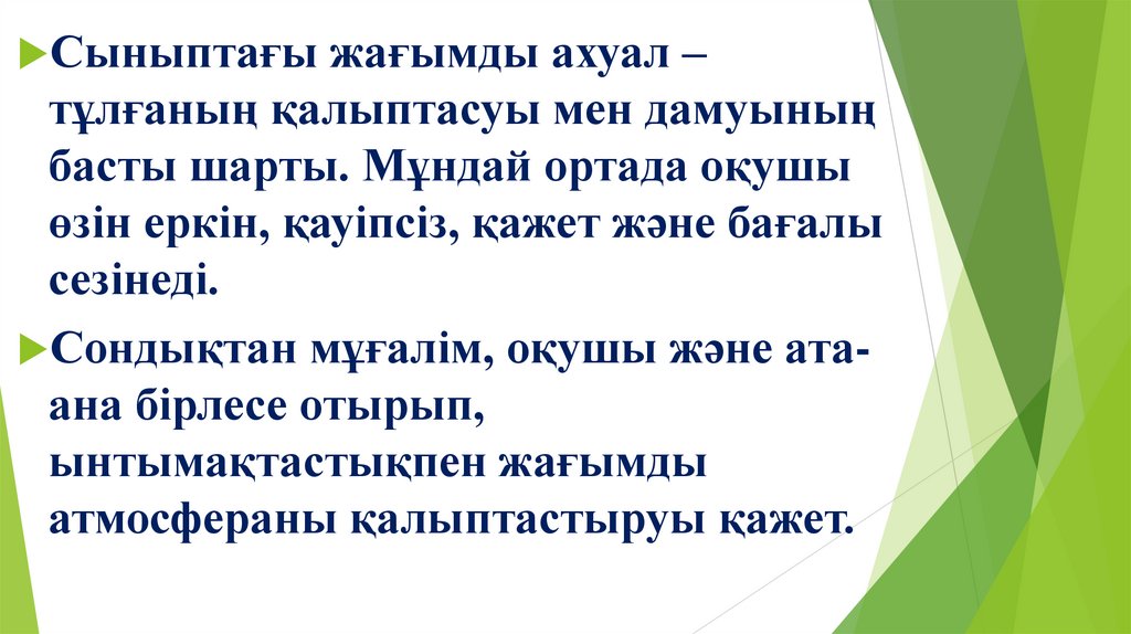 Сыныптағы жағымды ахуал –тұлғаның қалыптасуы мен дамуының