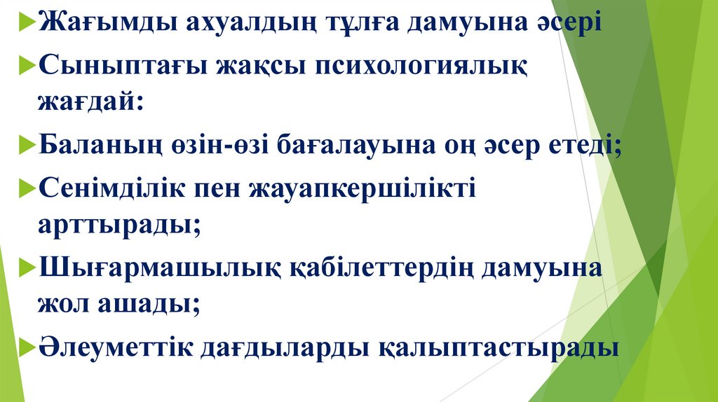 Жағымды ахуалдың тұлға дамуына әсеріСыныптағы жақсы психологиялық