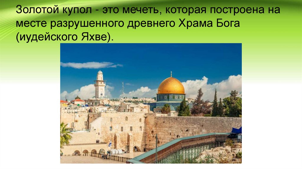 Золотой купол - это мечеть, которая построена наместе разрушенного древнего Храма Бога