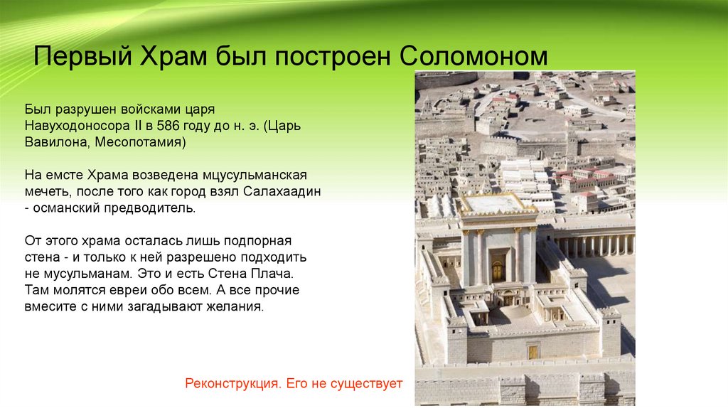 Первый Храм был построен СоломономБыл разрушен войсками царя