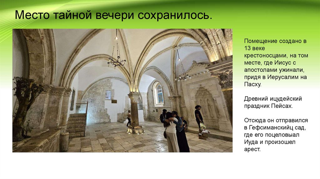 Место тайной вечери сохранилось.Помещение создано в