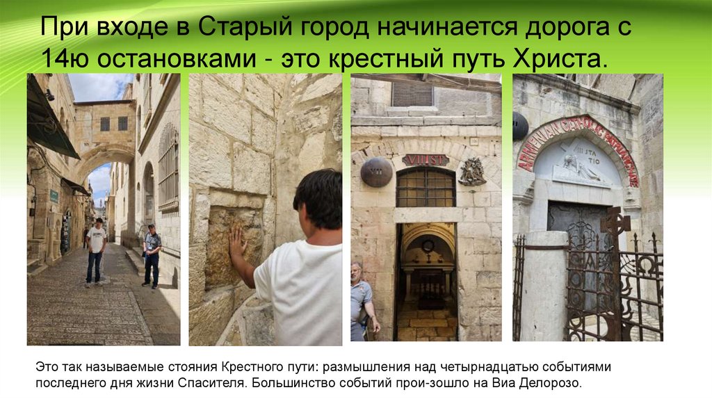 При входе в Старый город начинается дорога с14ю остановками - это крестный путь Христа.