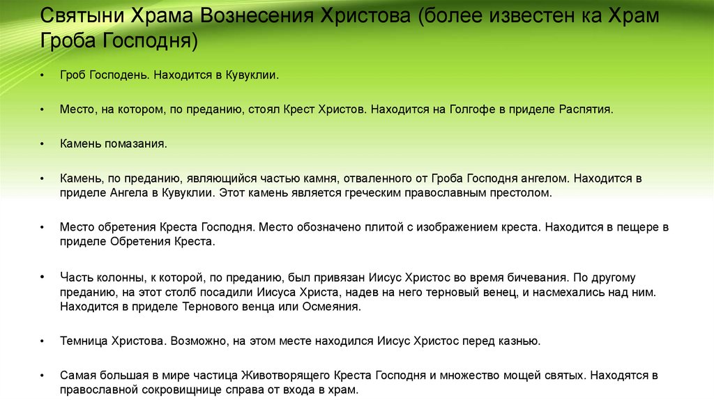 Святыни Храма Вознесения Христова (более известен ка ХрамГроба Господня)