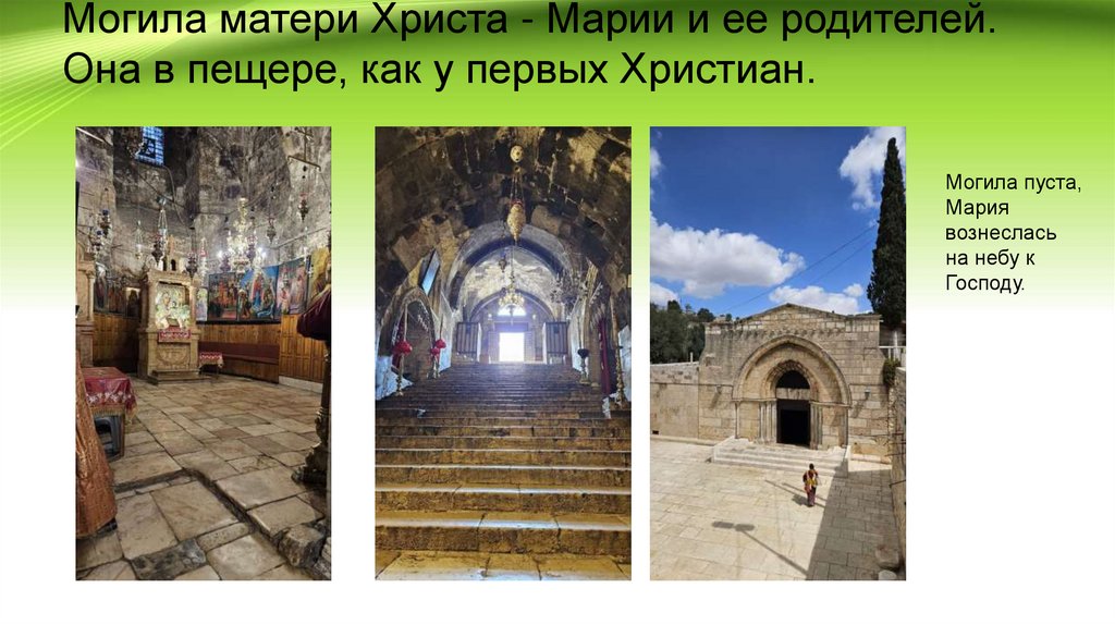 Могила матери Христа - Марии и ее родителей.Она в пещере, как у первых Христиан.