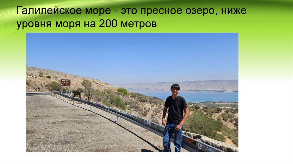 Галилейское море - это пресное озеро, нижеуровня моря на 200 метров