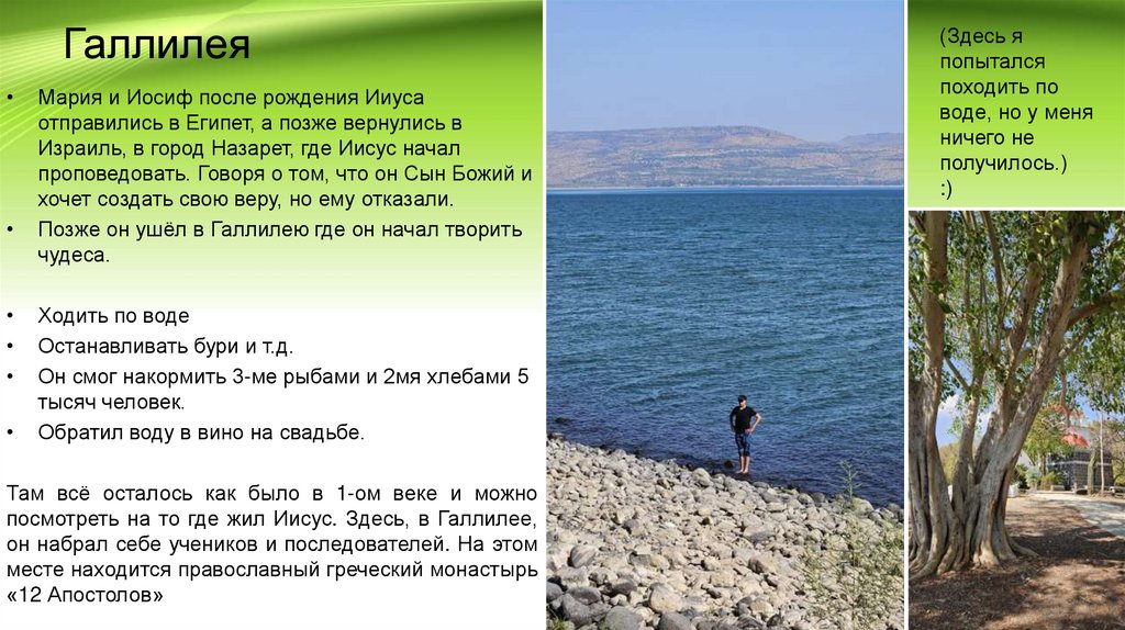 посмотреть на то где жил Иисус. Здесь, в Галлилее,