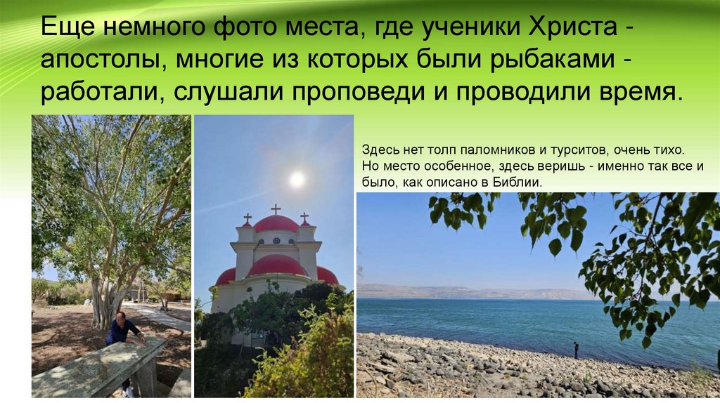 Еще немного фото места, где ученики Христа апостолы, многие из которых были рыбаками работали, слушали проповеди и проводили время.Здесь нет толп паломников и турситов, очень тихо.