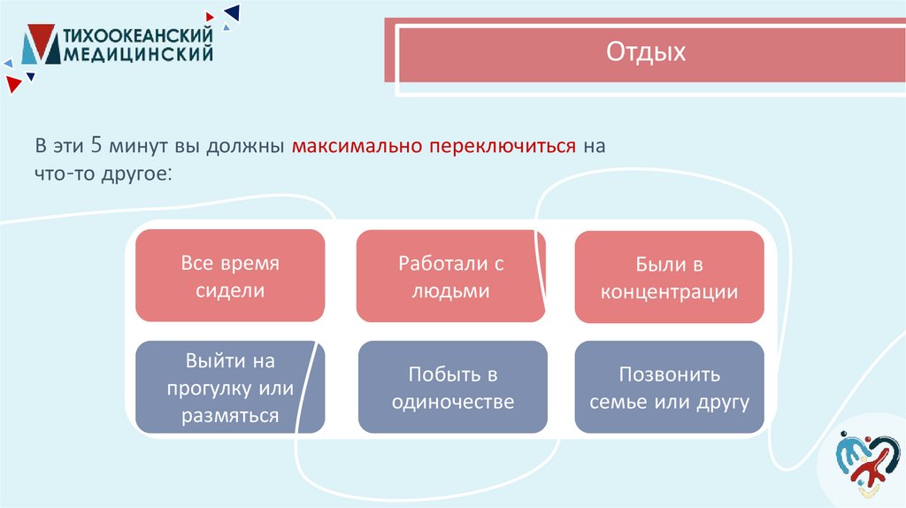 ОтдыхВ эти 5 минут вы должны максимально переключиться на