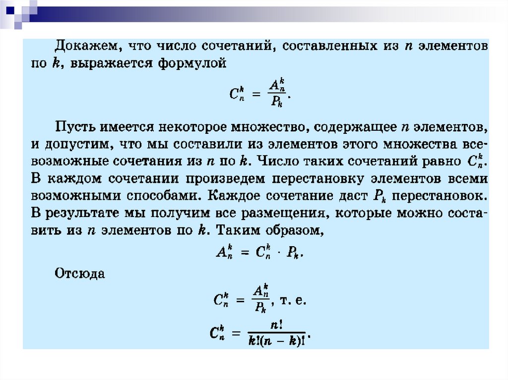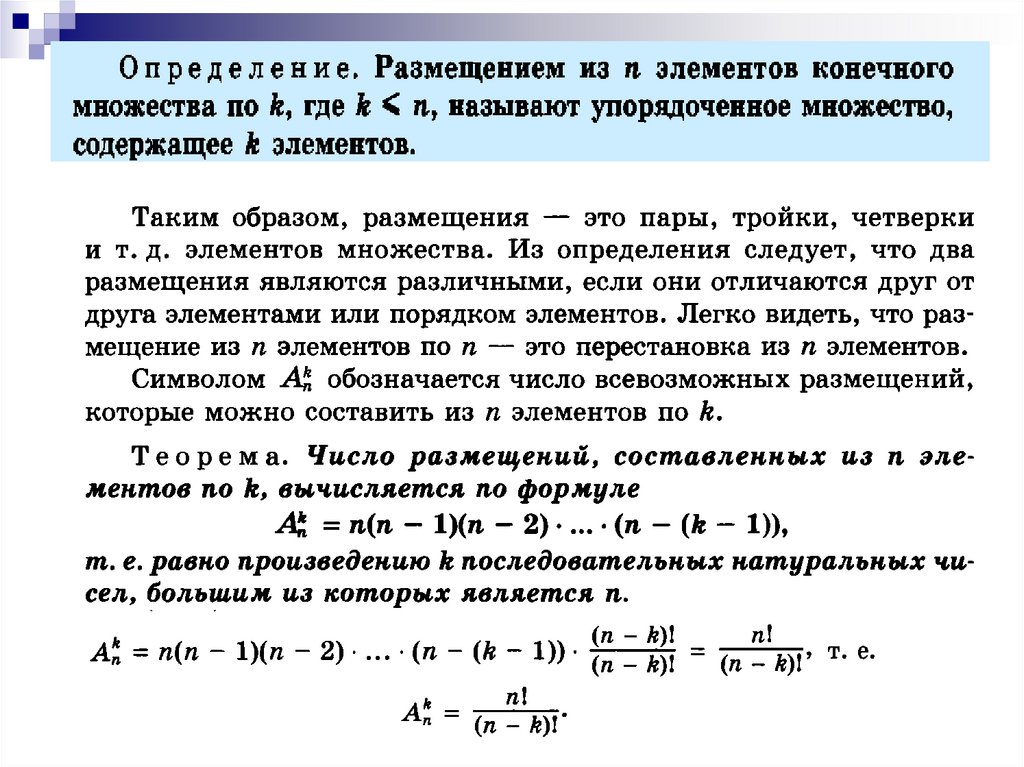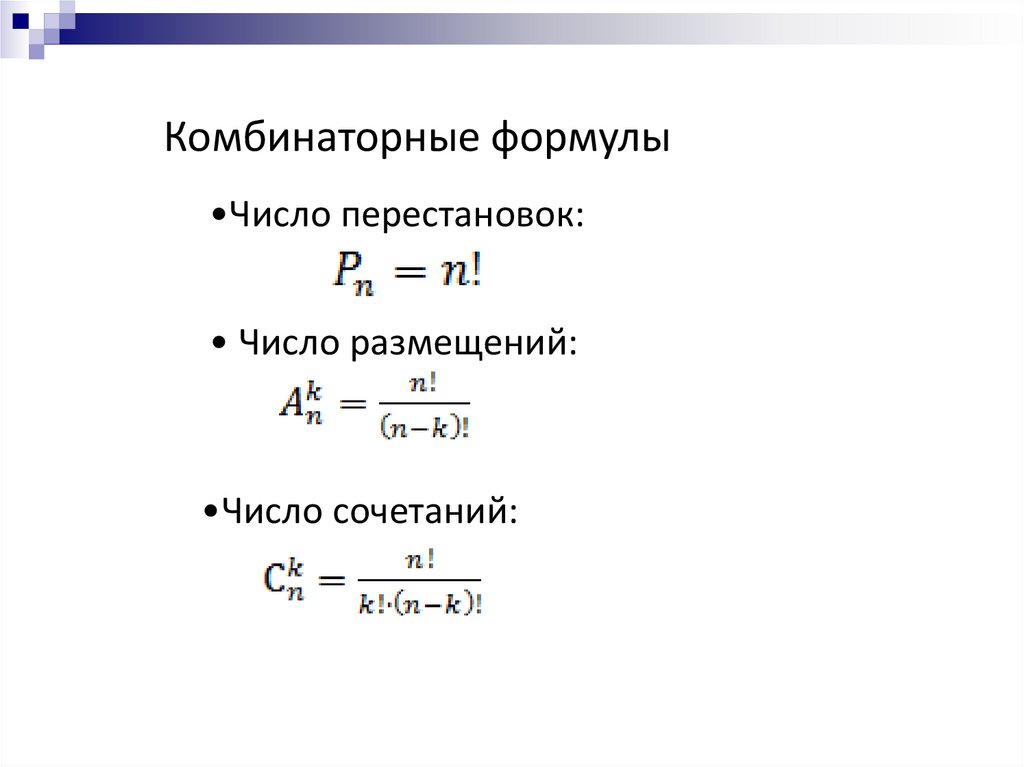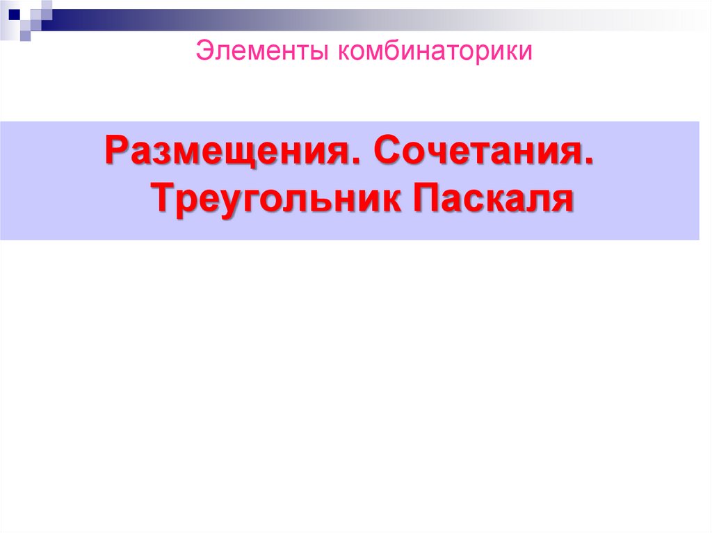 Основные понятия и формулы комбинаторики. Размещения. Сочетания. Треугольник Паскаля