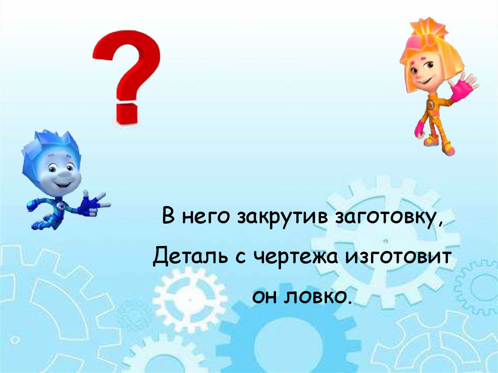 В него закрутив заготовку,Деталь с чертежа изготовит