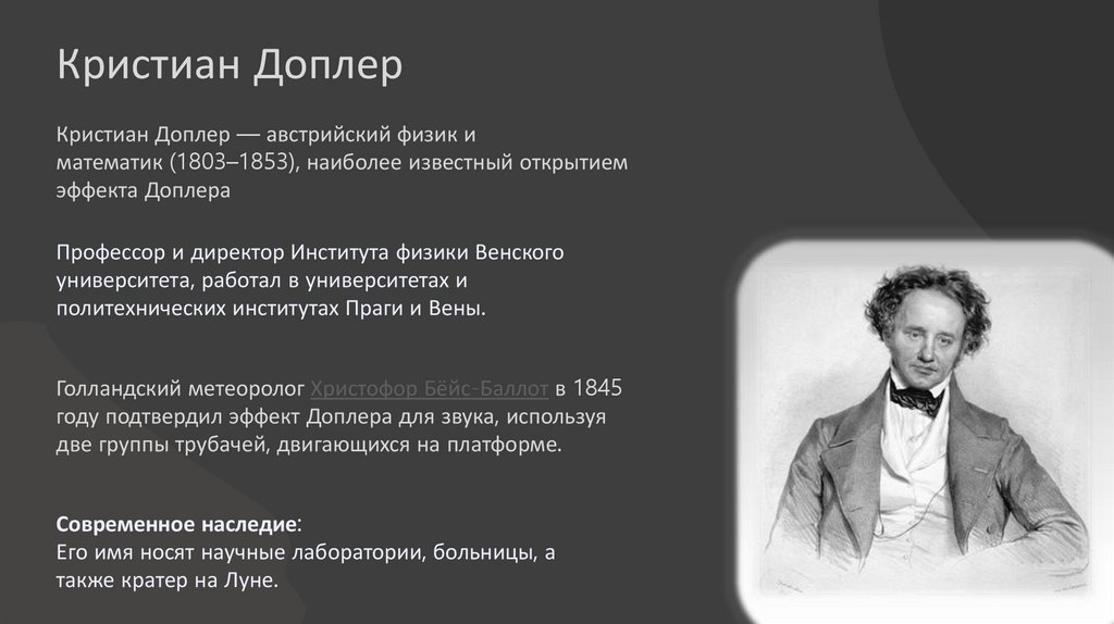 Кристиан ДоплерКристиан Доплер — австрийский физик и