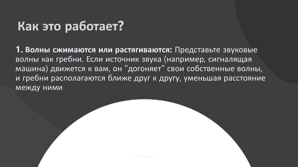 Как это работает?1. Волны сжимаются или растягиваются: Представьте звуковые