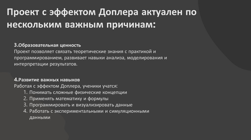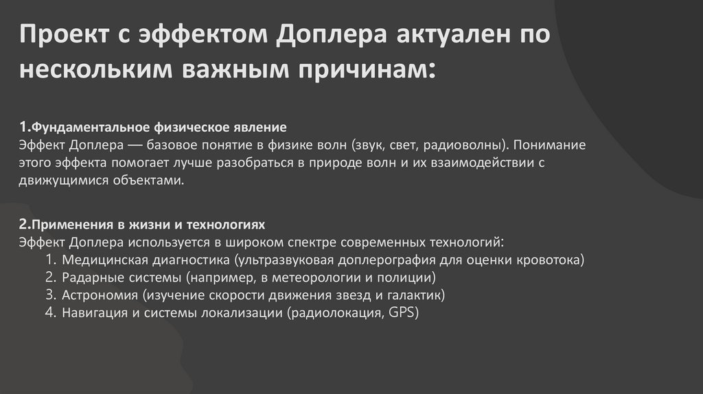 Проект с эффектом Доплера актуален понескольким важным причинам: