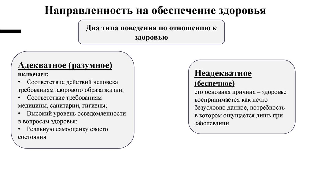 Направленность на обеспечение здоровьяДва типа поведения по отношению к