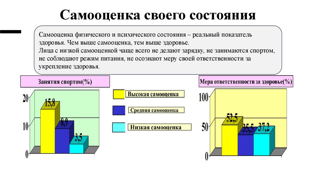 здоровья. Чем выше самооценка, тем выше здоровье.