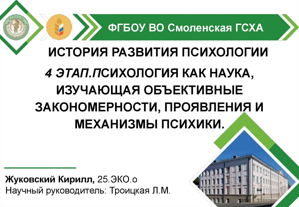 ФГБОУ ВО Смоленская ГСХАИСТОРИЯ РАЗВИТИЯ ПСИХОЛОГИИ
