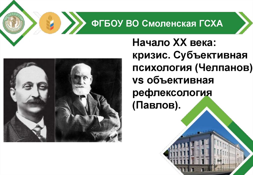 ФГБОУ ВО Смоленская ГСХАИ.П. Павлов и В.М. Бехтерев