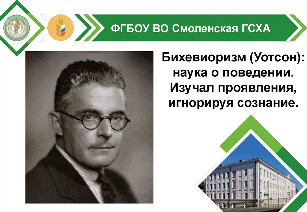 ФГБОУ ВО Смоленская ГСХАБихевиоризм (Уотсон):
