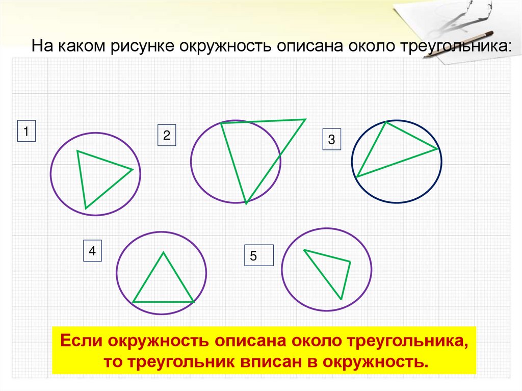 На каком рисунке окружность описана около треугольника:1