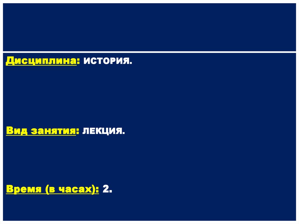 Дисциплина: ИСТОРИЯ.Вид занятия: ЛЕКЦИЯ.