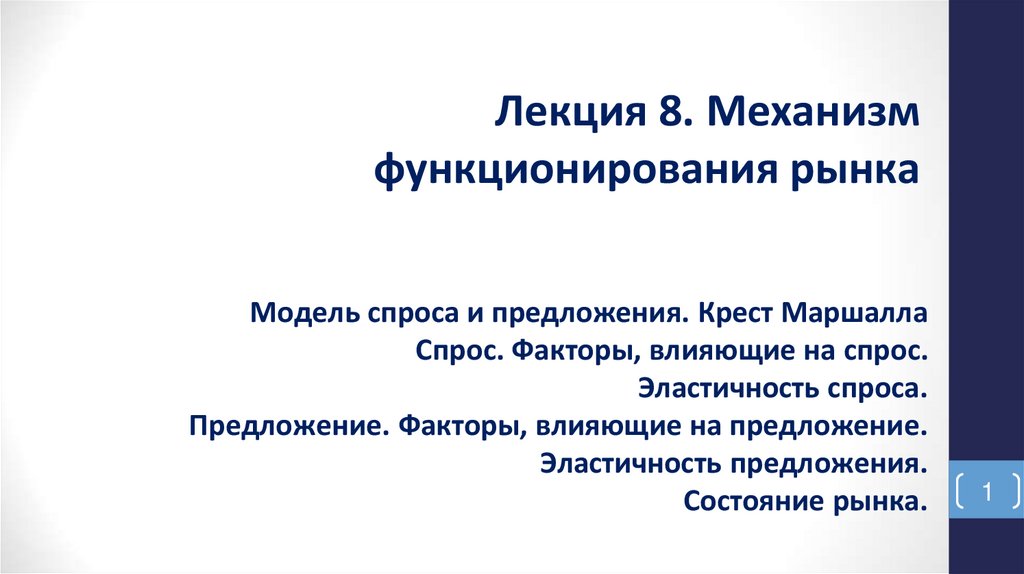 1. Лекция 8. Механизм функционирования рынка