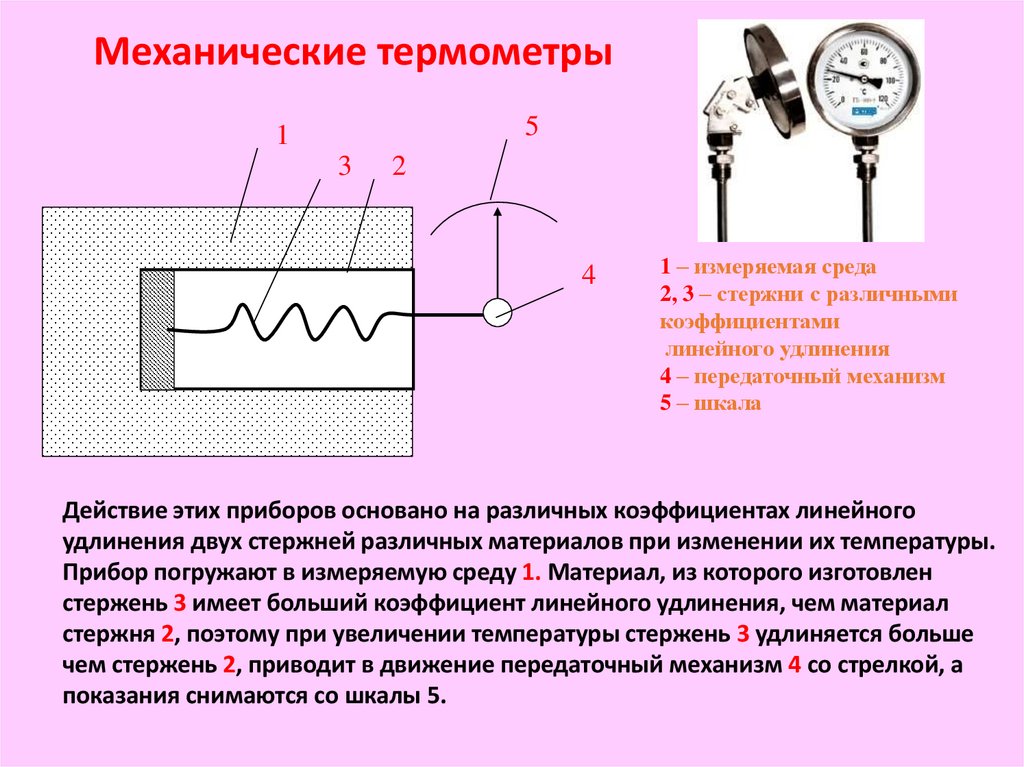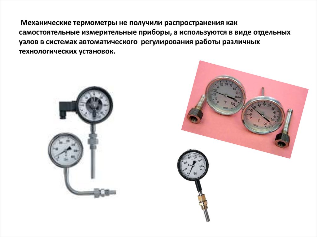 Механические термометры не получили распространения каксамостоятельные измерительные приборы, а используются в виде отдельных