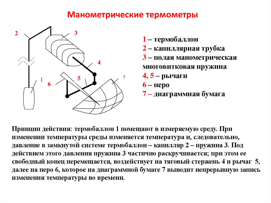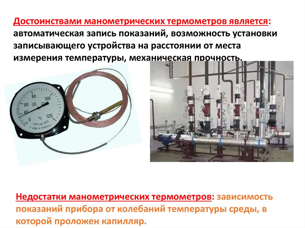 Достоинствами манометрических термометров является:автоматическая запись показаний, возможность установки