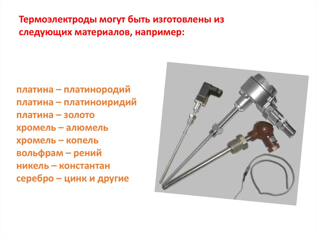 Термоэлектроды могут быть изготовлены изследующих материалов, например: