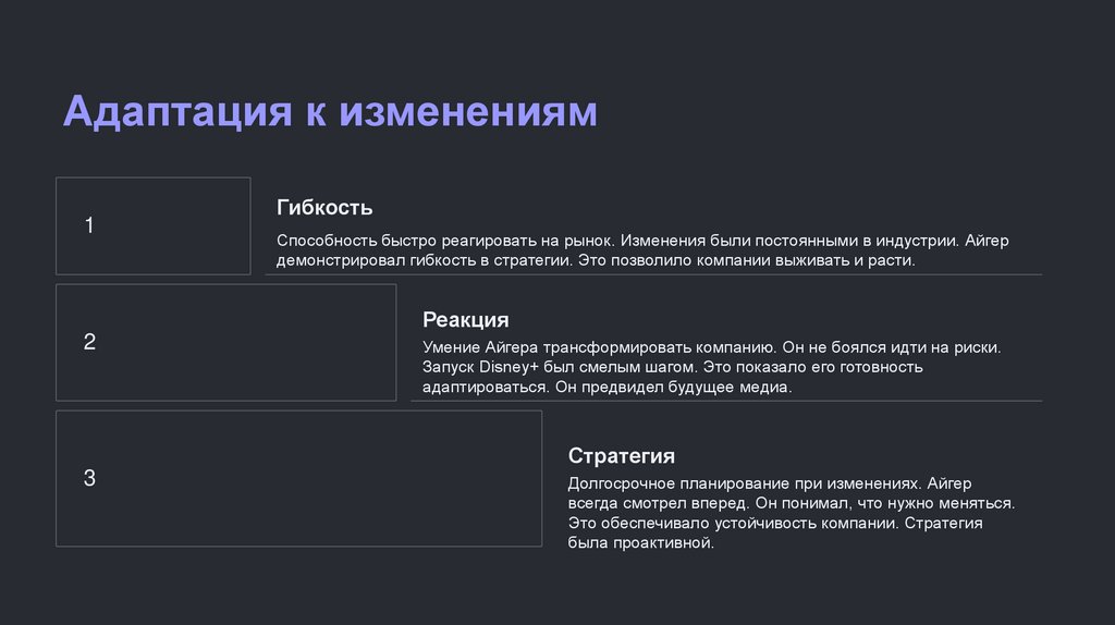 Умение Айгера трансформировать компанию. Он не боялся идти на риски.