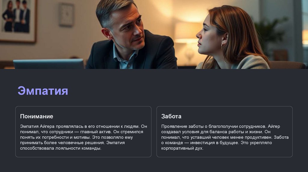 Важность признания заслуг сотрудников. Айгер понимал, что люди