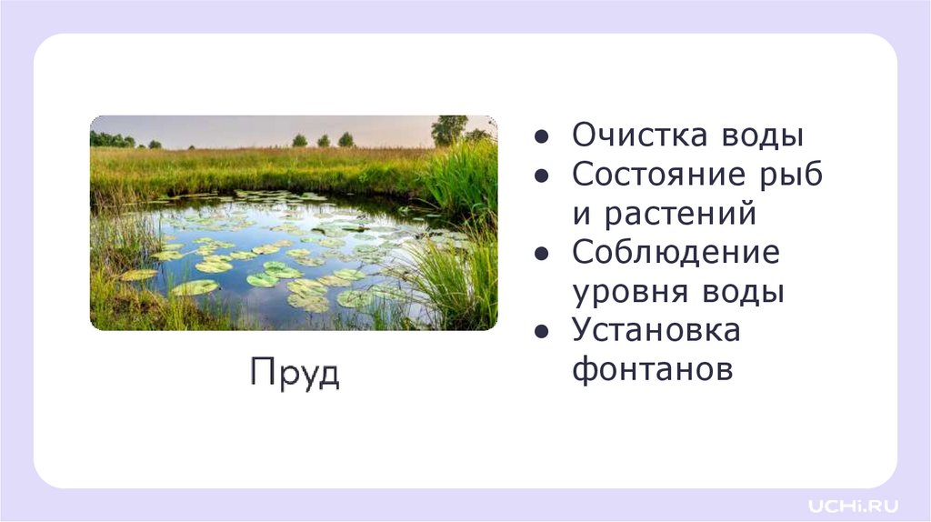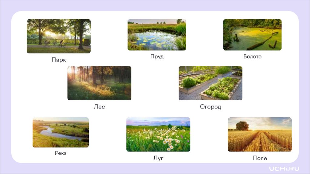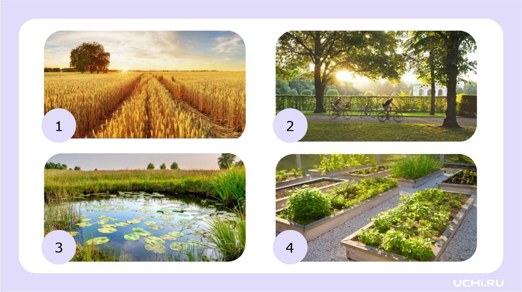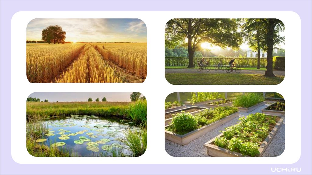 Искусственные природные сообщества,созданные человеком, — пруд, поле, парк,