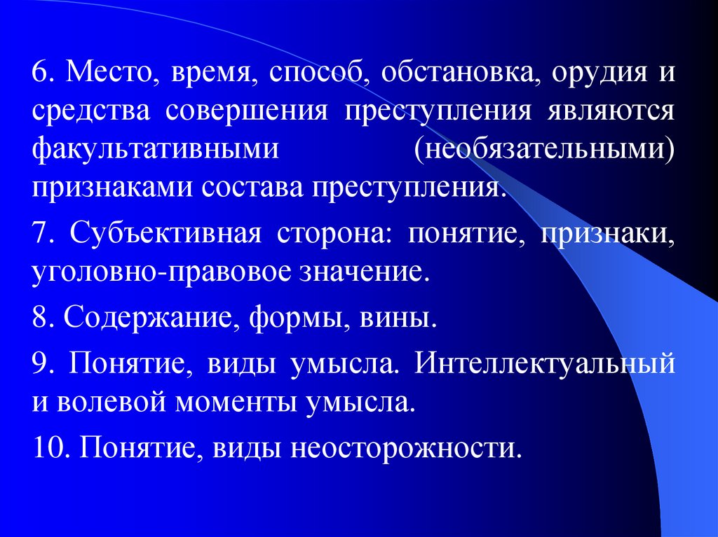 6. Место, время, способ, обстановка, орудия исредства совершения преступления являются