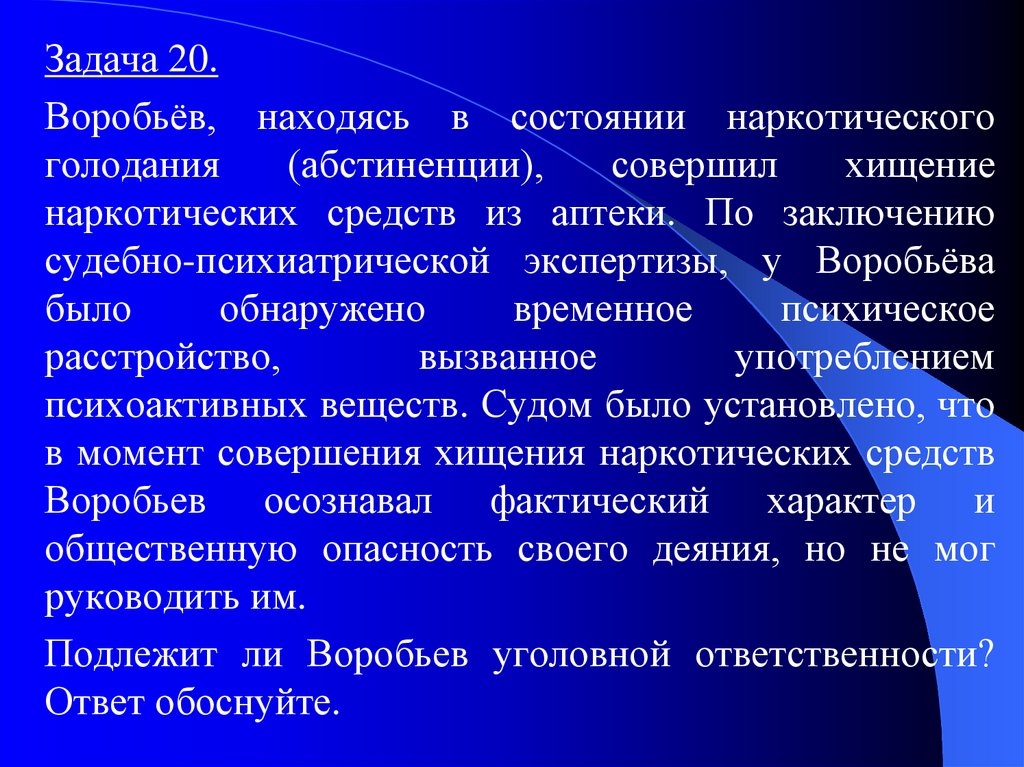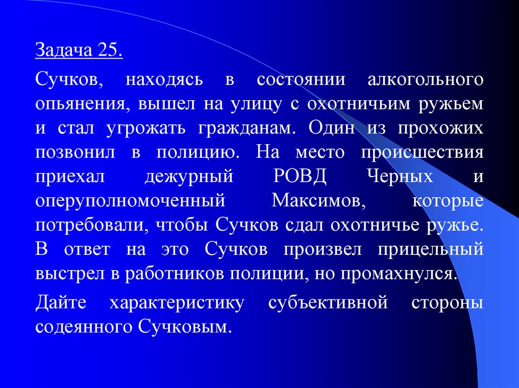 Задача 25.Сучков, находясь в состоянии алкогольного