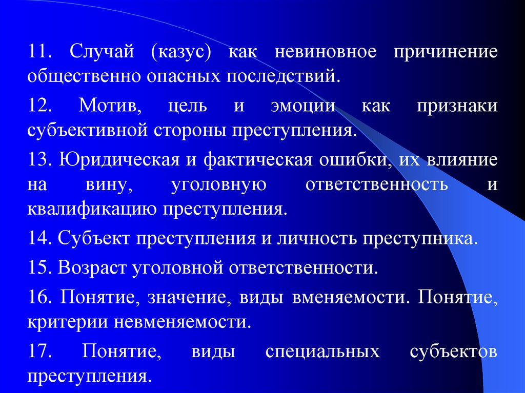11. Случай (казус) как невиновное причинениеобщественно опасных последствий.