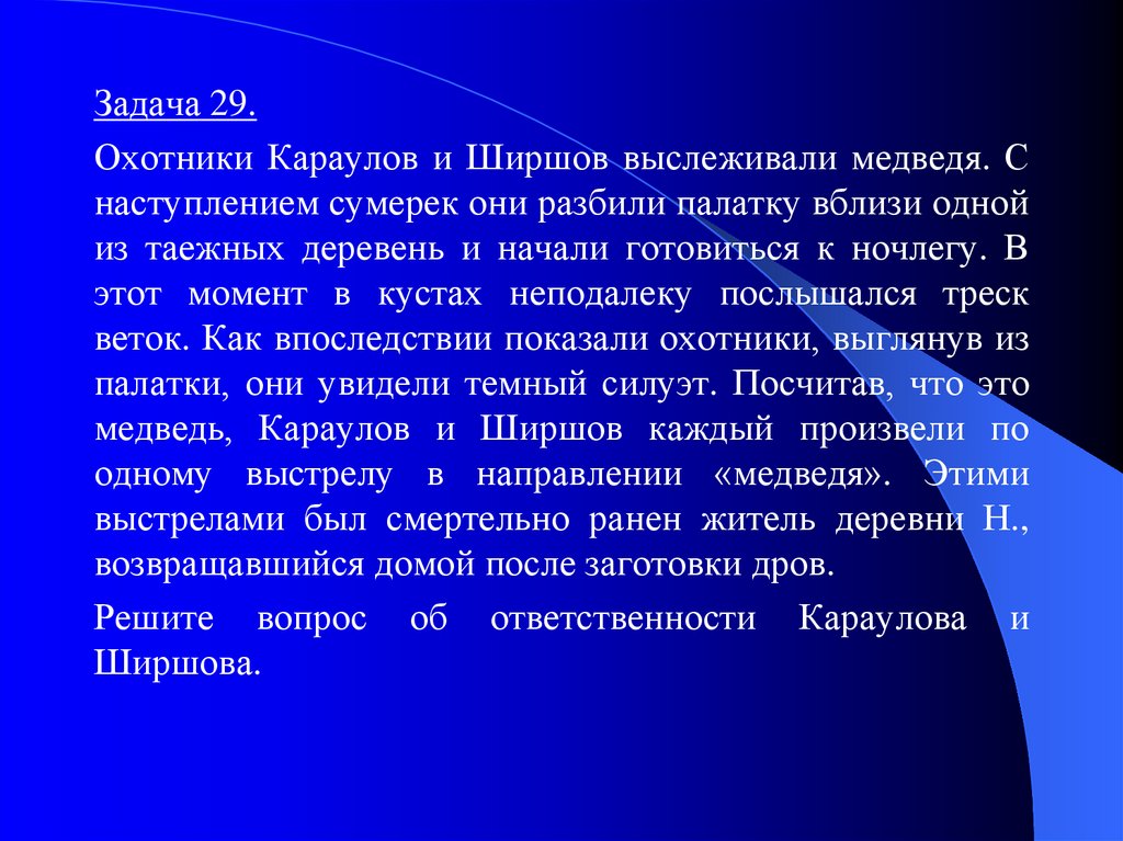 Задача 29.Охотники Караулов и Ширшов выслеживали медведя. С