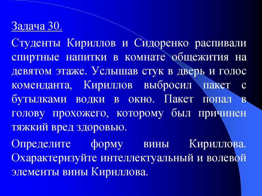 Задача 30.Студенты Кириллов и Сидоренко распивали