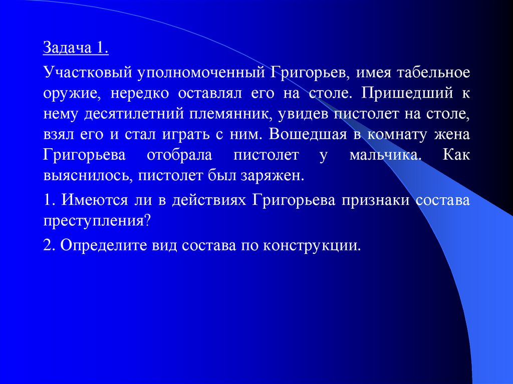 Задача 1.Участковый уполномоченный Григорьев, имея табельное
