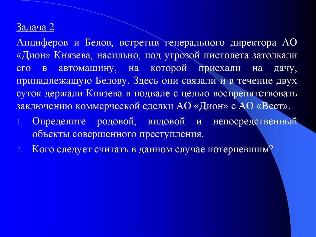 Задача 2Анциферов и Белов, встретив генерального директора АО