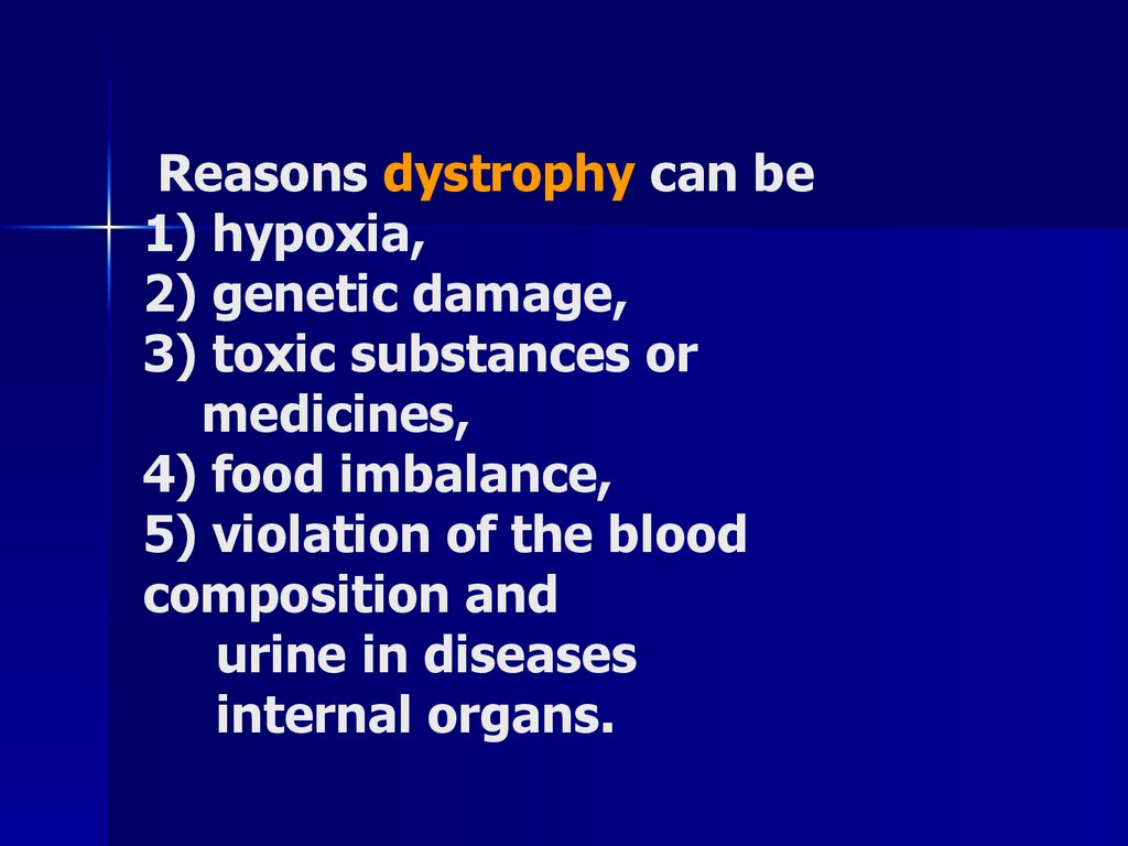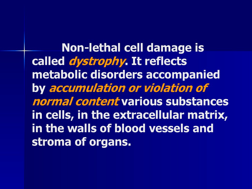 Non-lethal cell damage iscalled dystrophy. It reflects