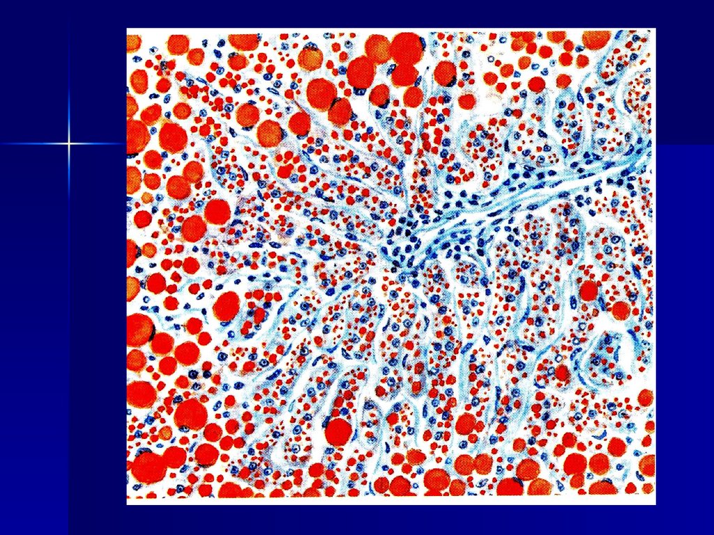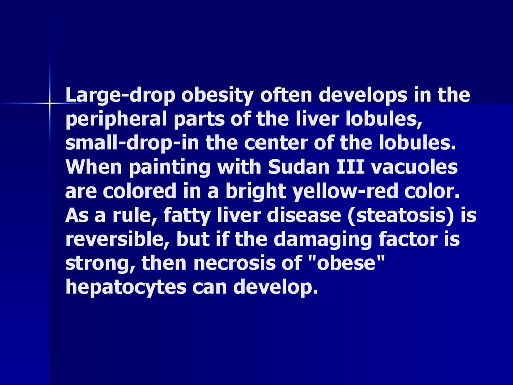 Large-drop obesity often develops in theperipheral parts of the liver lobules,