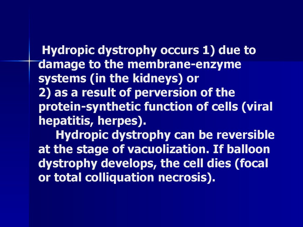 Hydropic dystrophy occurs 1) due todamage to the membrane-enzyme