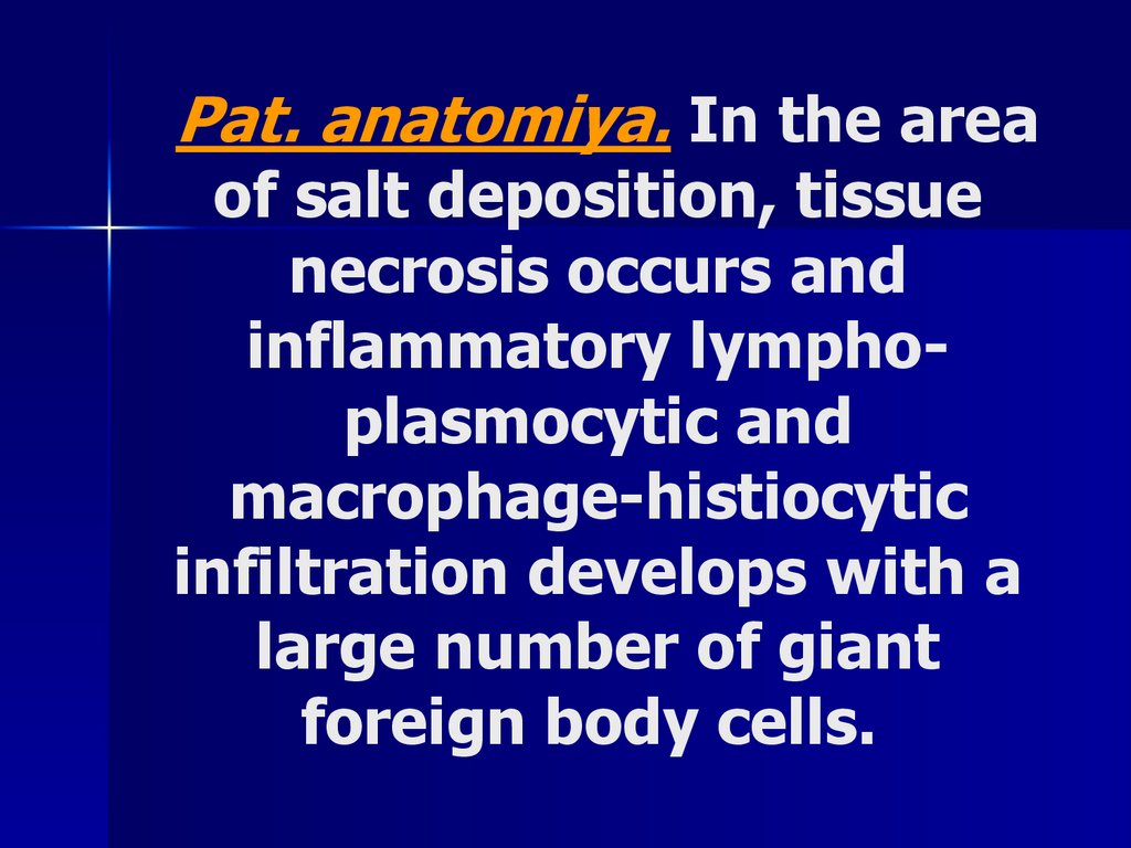 Pat. anatomiya. In the areaof salt deposition, tissue