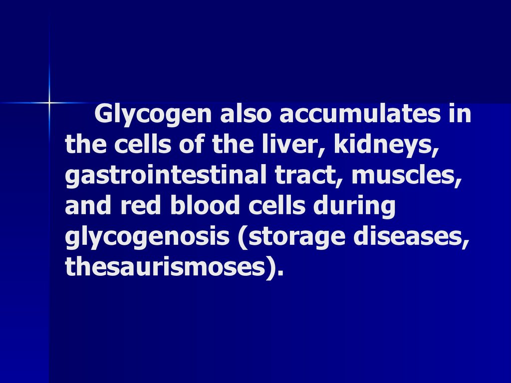 Glycogen also accumulates inthe cells of the liver, kidneys,