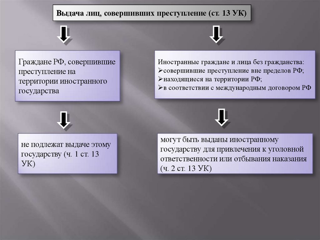 Выдача лиц, совершивших преступление (ст. 13 УК)Граждане РФ, совершившие