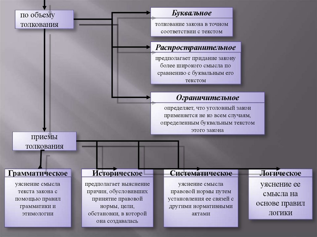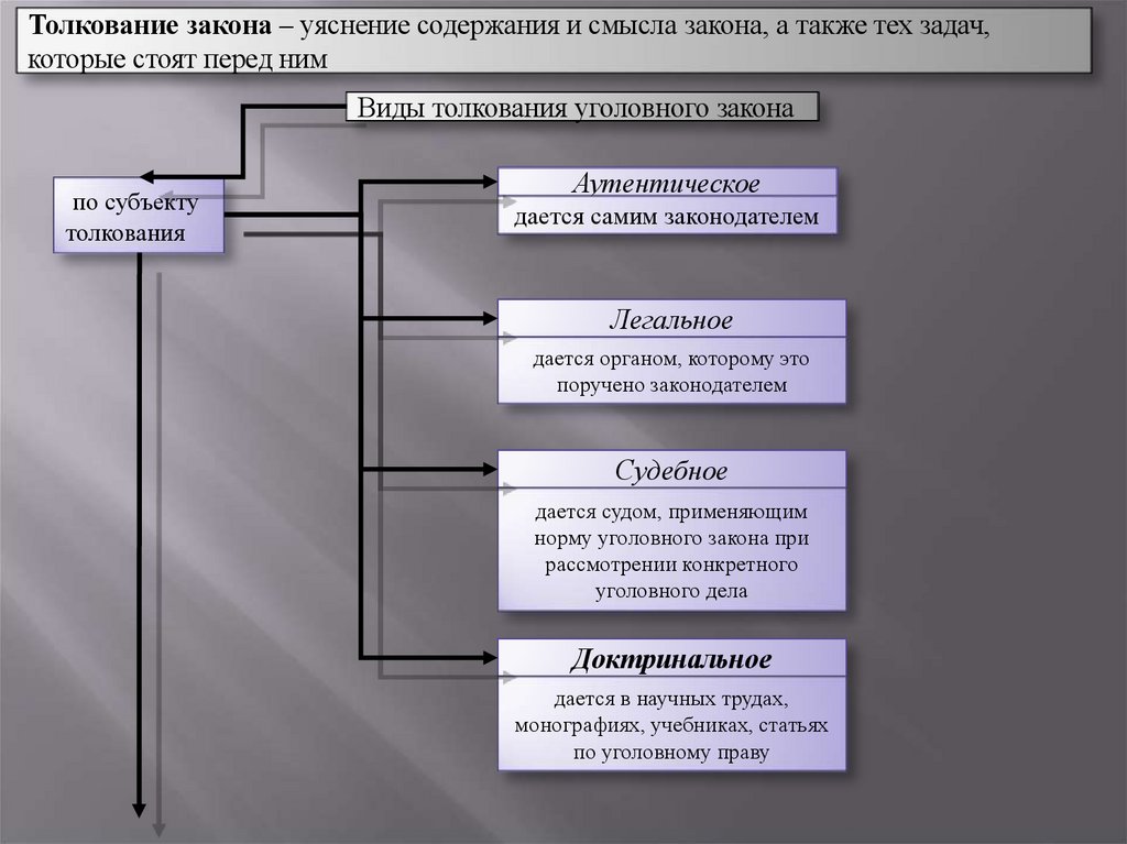 Толкование закона – уяснение содержания и смысла закона, а также тех задач,которые стоят перед ним