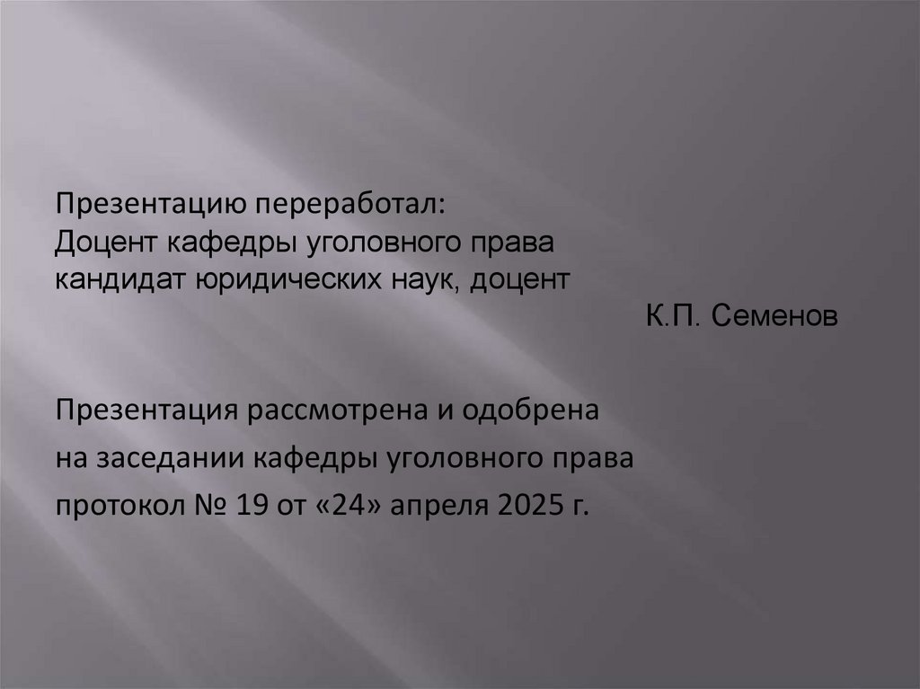 Учебные вопросы:1. Понятие и содержание уголовного закона.