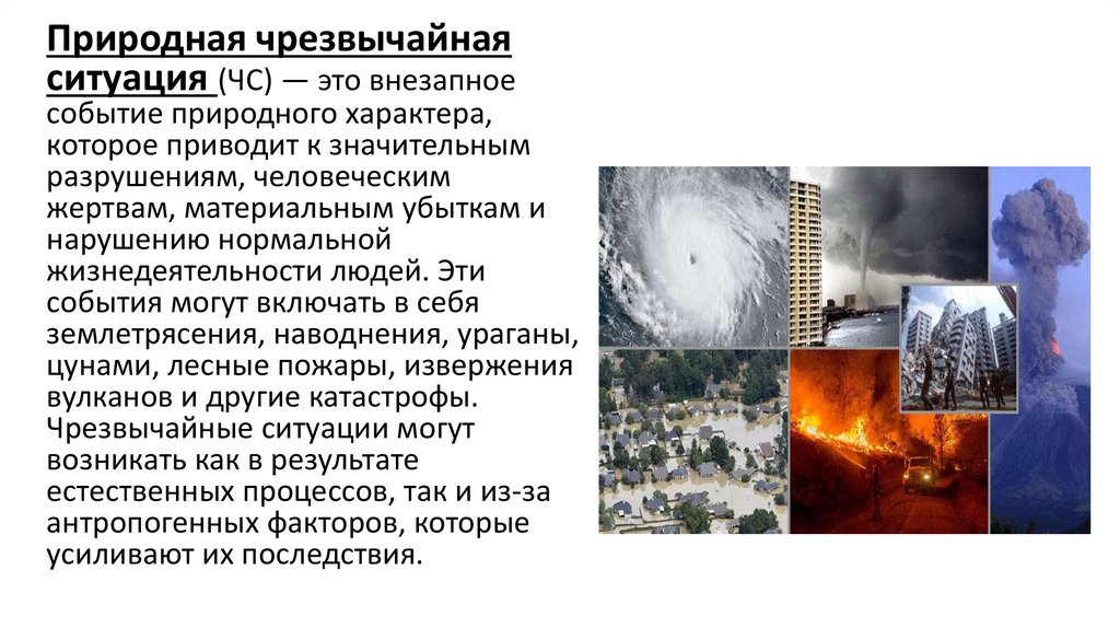 Природная чрезвычайнаяситуация (ЧС) — это внезапное