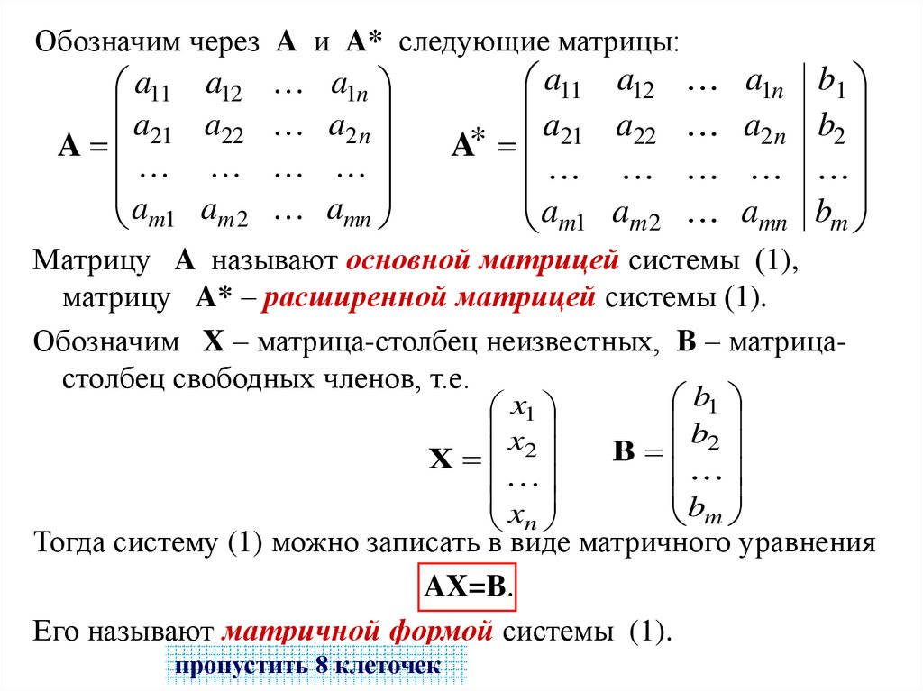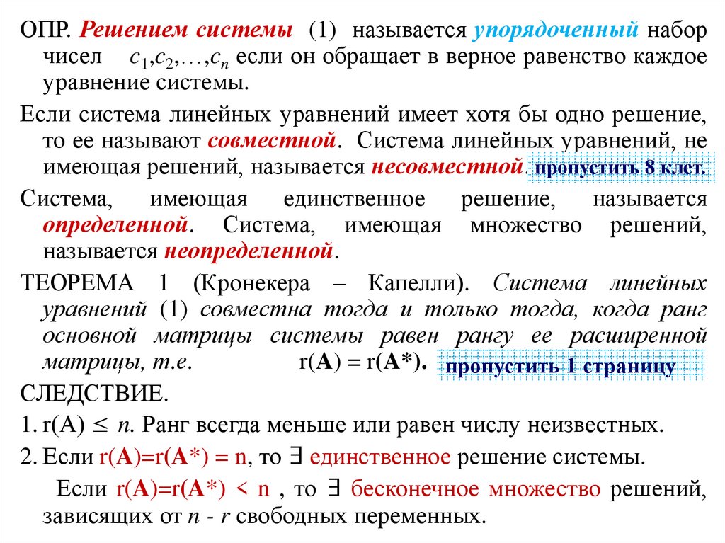 1. r(А) ≤ n. Ранг всегда меньше или равен числу неизвестных.