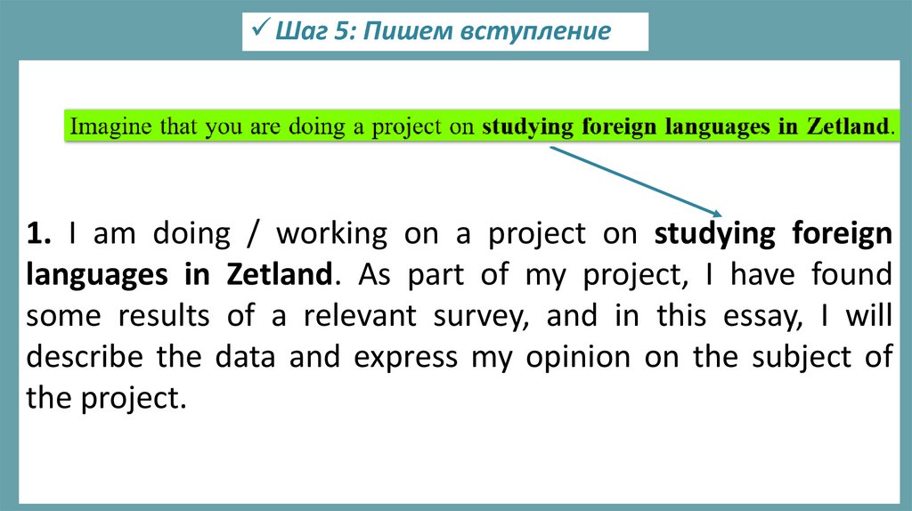 Шаг 5: Пишем вступление1. I am doing / working on a project on studying foreign